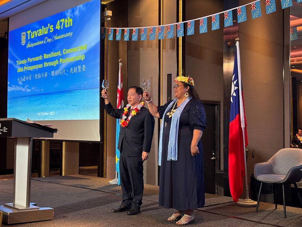外交部常務次長葛葆萱於今(2025)年10月1日晚間,應邀偕夫人並代表外交部長林佳龍出席我國友邦吐瓦魯國駐台大使館舉辦之「吐瓦魯國獨立47週年國慶酒會」,申致祝賀。