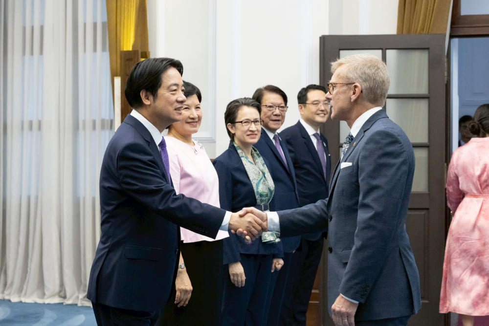 賴清德總統伉儷偕同蕭美琴副總統今(10)日上午在總統府接受參加中華民國114年國慶活動的各國慶賀團、代表們及駐臺使節,致賀我國雙十國慶。