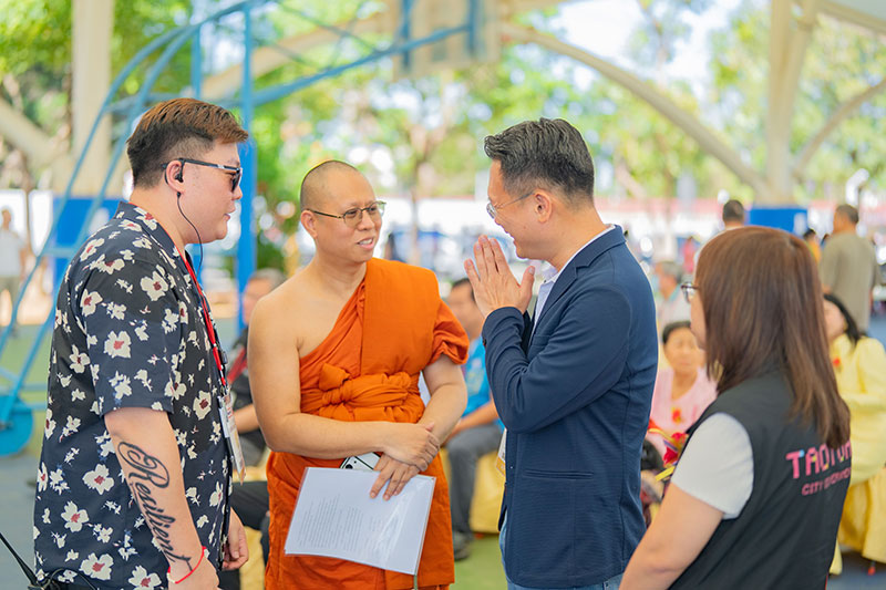 桃園市副市長蘇俊賓今(12)日上午前往中壢區,出席「泰國結夏安居功德文化節」。蘇俊賓表示,泰國朋友們在桃園及臺灣各地的貢獻,大家都有目共睹。尤其日前花蓮馬太鞍地區發生災情,許多移工朋友自發組隊,開著小山貓、拿著鏟子前往花蓮協助救災,其中也有許多泰國朋友的身影。感謝大家以行動展現愛與善意,把臺灣當成自己的家人與故鄉,持續在這片土地上傳遞善良的循環。