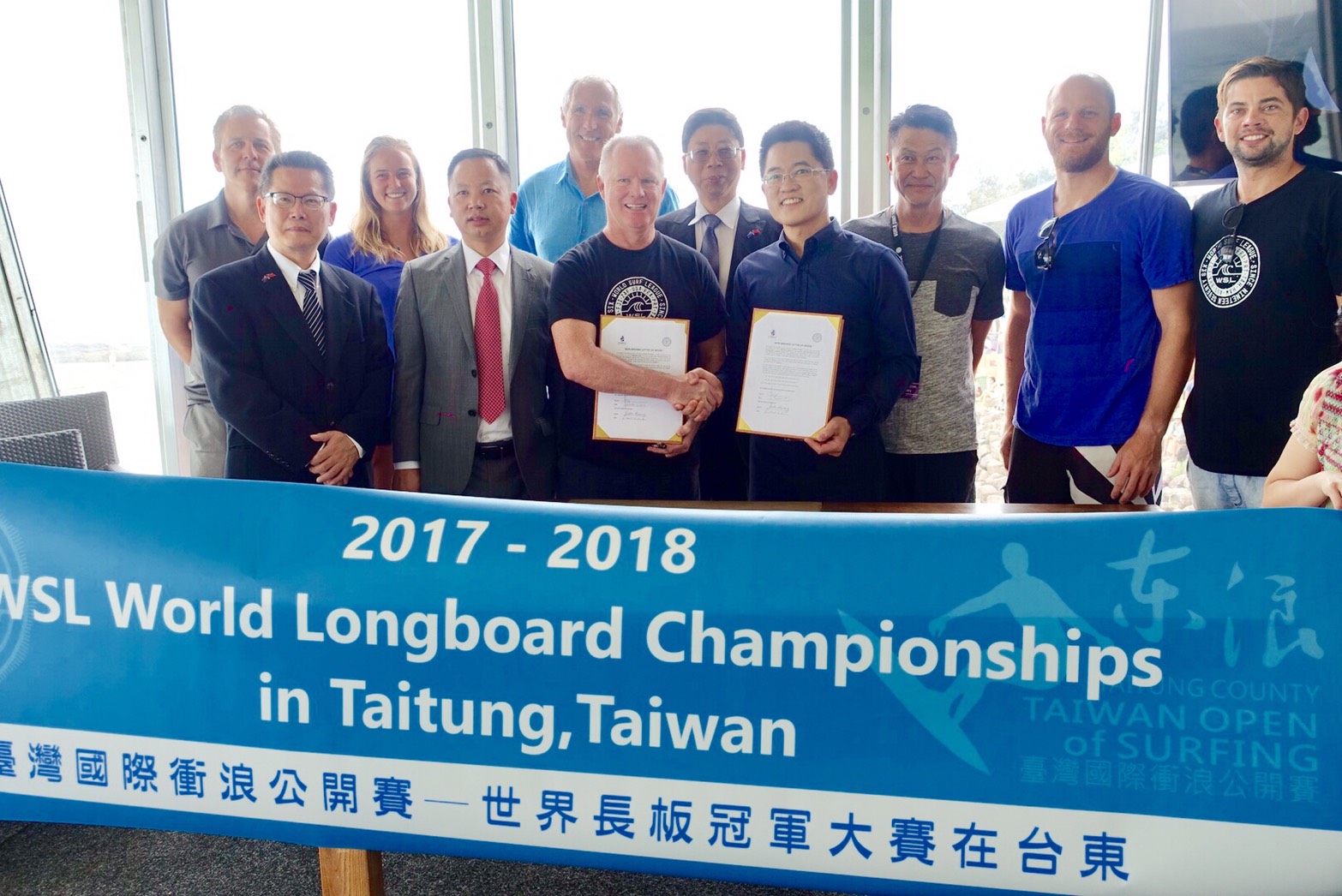 臺東縣政府今(13)日於澳洲黃金海岸Snapper Rocks與World Surf League(世界衝浪聯盟WSL)簽訂合作意向書,宣布將於臺東東河金樽辦理「2017世界男子和女子長板冠軍賽」,這是臺東繼連續舉辦六年的臺灣國際衝浪公開賽後,創下臺灣首次辦理世界長板冠軍賽的紀錄,將臺灣的國際衝浪水準又提高到更高層次。