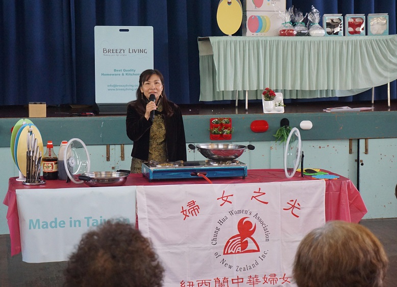 李沈會長致詞歡迎貴賓盛情參與,並表示本次透過廚藝教學活動歡慶母親節,不僅聯誼會員情誼,也讓年輕媽媽們輕鬆料理出一桌家常菜。李沈會長也感謝陳美伶女士提供示範用的鍋具等器具,藉此可將臺灣優良產品推廣至紐西蘭。