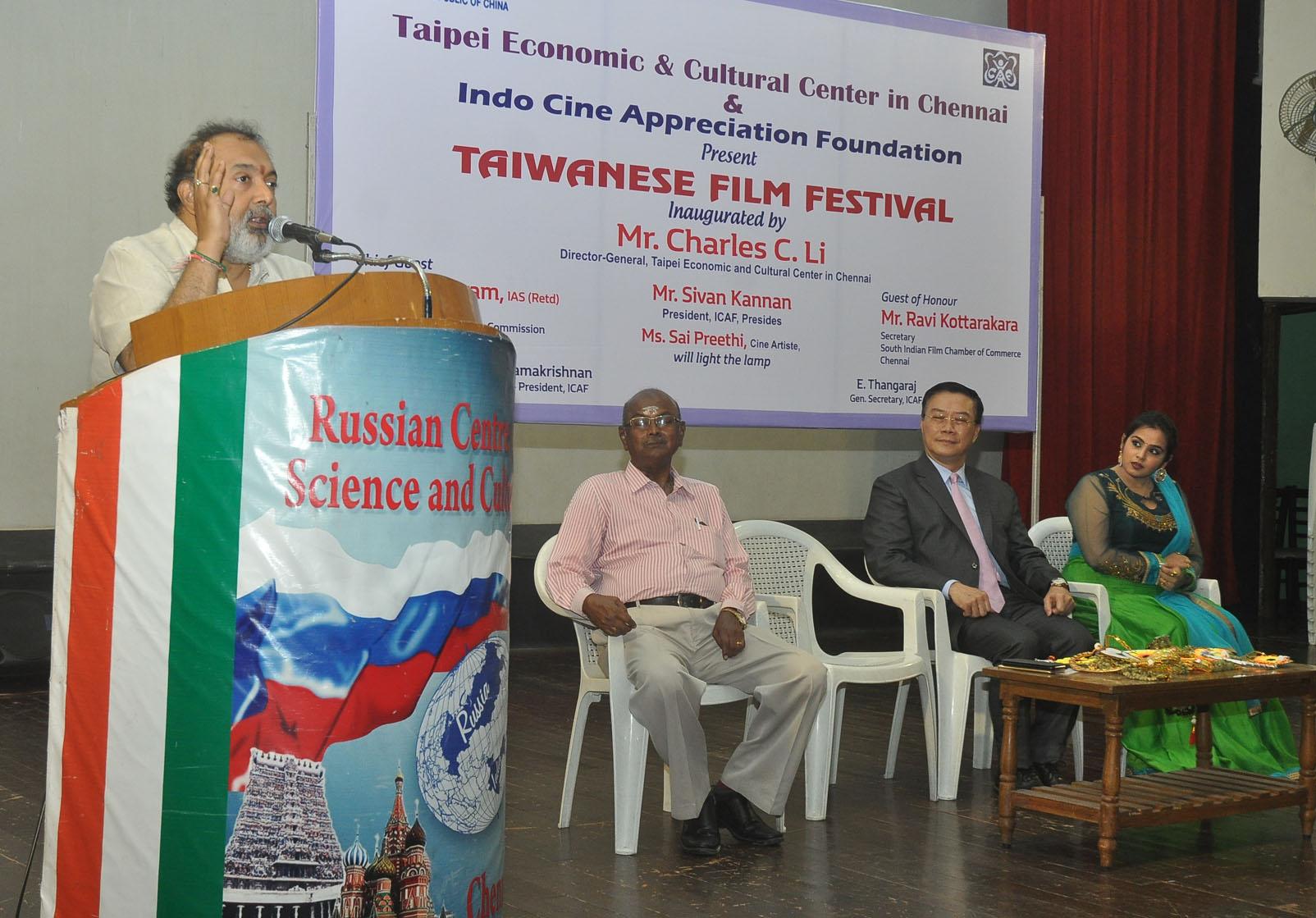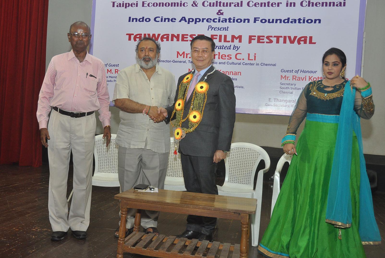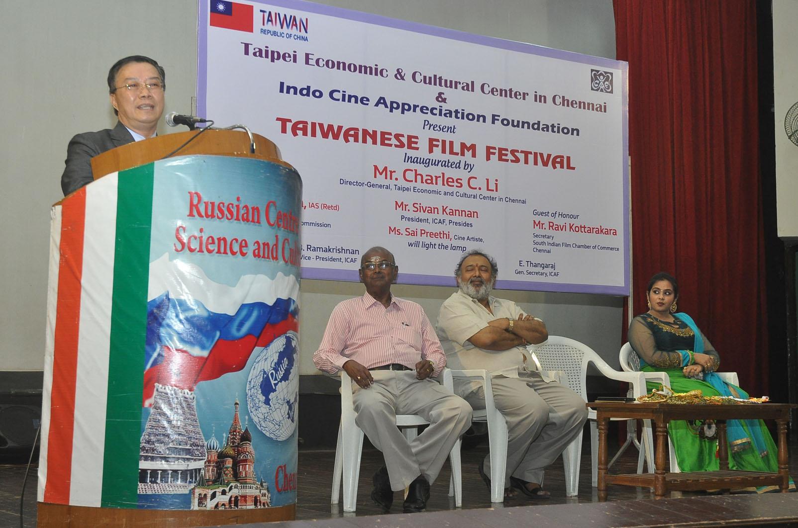 李朝成處長致詞表示,印度是電影工業最大出品國,年產超過1500部電影,臺灣電影產量雖然遠低於印度,但是大多關切個人心理與生活困境,人與人疏離的情況,以及家庭、社會、學校、環境所面臨的問題,所呈現的議題值得觀眾省思,歡迎清奈觀眾踴躍觀賞,切勿錯過本年精選的五部電影。