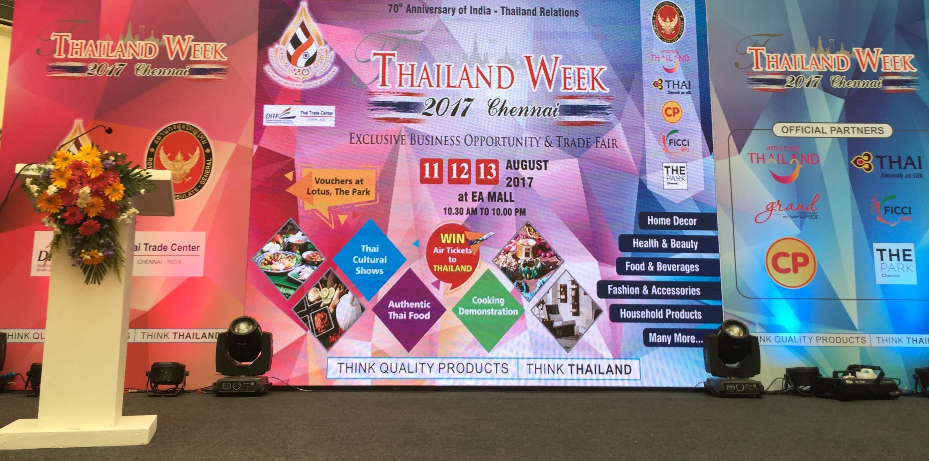 駐清奈辦事處李朝成處長8月11日上午應邀出席泰國週開幕儀式 資料來源 駐清奈辦事處 2017-08-14 李朝成處長(左)與泰國總領事Mrs. Kronkanit Rakcharoen(右)合影 泰國週活動 泰國週活動 泰國傳統舞蹈表演 泰國傳統舞蹈表演 泰國傳統舞蹈表演 泰國傳統舞蹈表演 泰國傳統舞蹈表演 駐清奈辦事處李朝成處長8月11日上午應泰國總領事Mrs. Kronkanit Rakcharoen之邀出席在清奈Express Avenue購物商場舉辦之泰國週開幕儀式,隨後觀賞泰國傳統舞蹈演出,並參觀近四十個泰國公司攤位,觀摩學習泰國舉辦貿易推廣、結合文化表演與泰國美食的活動方式,獲益良多。