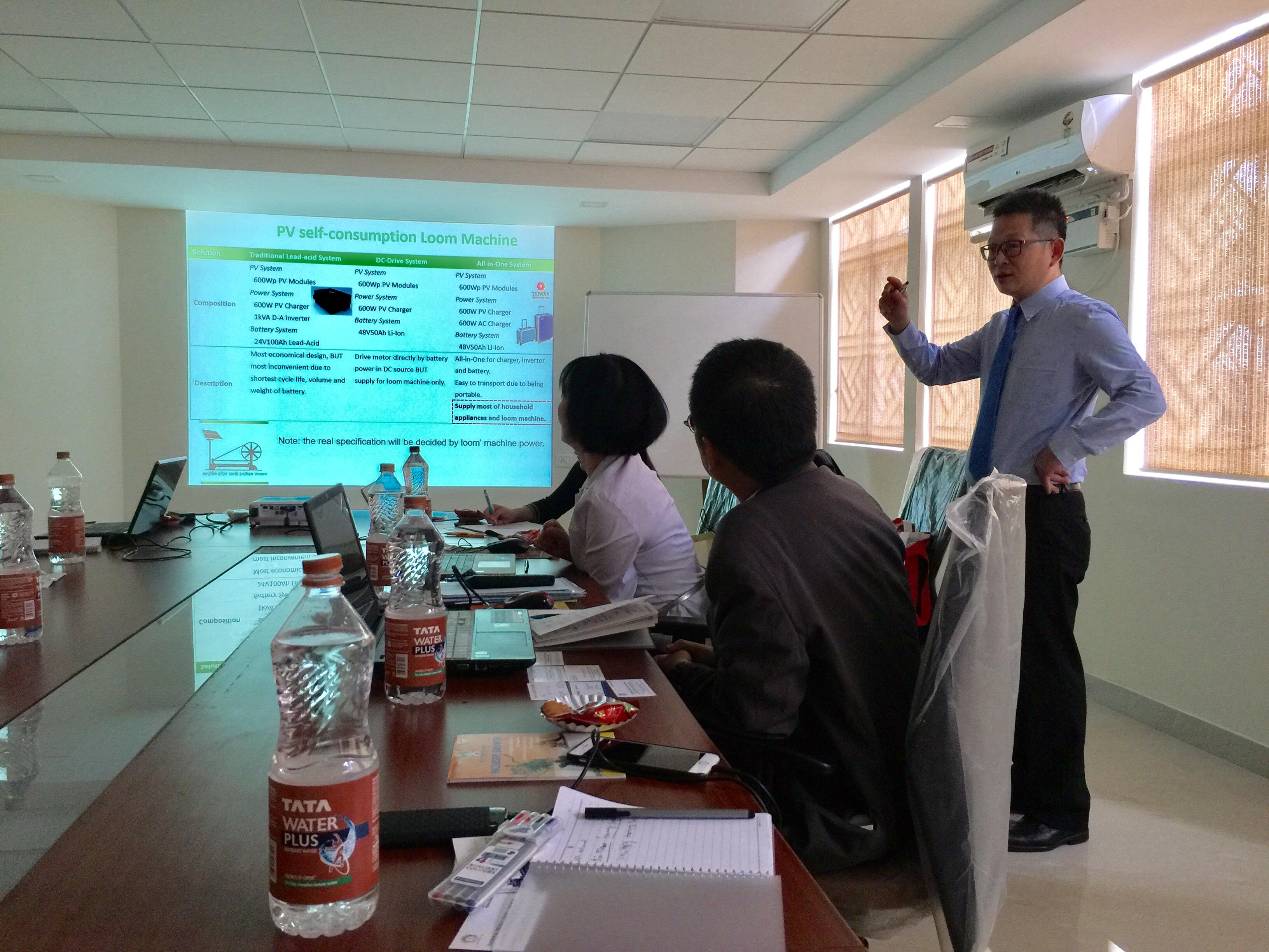 中國生產力中心代表團簡報在印度執行亞洲生產力組織(APO)綠能及水處理計畫。