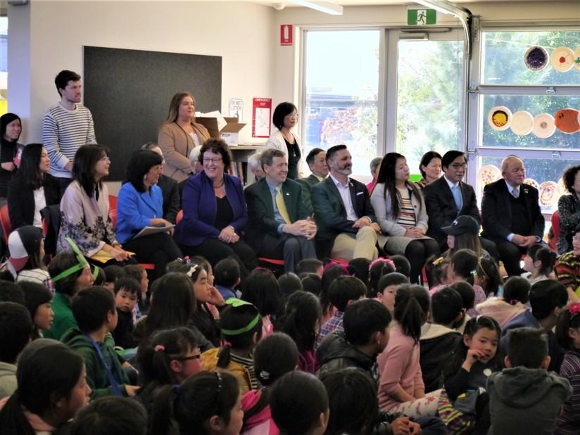 嗣Banks眾議員、Collins參議員、Clark影子廳長、Watt州議員、劉市議員亦上臺致詞,感謝該校多年來從事華語文教育,推動多元文化,並祝福該校校務蒸蒸日上。