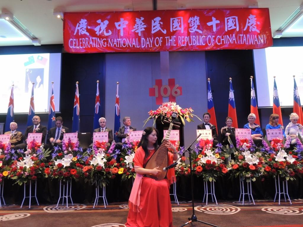 國慶酒會現場除邀請在紐定居之國立台灣師範大學藝術學許牧慈博士表演「陽春白雪」、「彝族舞曲」等經典琵琶曲目外,並播放國慶宣傳影片「活力台灣 躍升國際」,彰顯中華民國創新產業及多元活力,廣受與會嘉賓關注,效果良好。優良旅紐臺商企業或產品:璽龍茶( Zealong Tea)、Story Coffee、中華航空公司、TSA公司、橄欖油品牌Olive Black及蝴蝶蘭農場等於酒會現場設置推廣攤位,展現台灣產品之精美與質感,廣受與會各國嘉賓之歡迎及肯定。