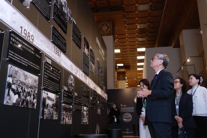 The National Chiang Kai-shek Memorial Hall unveiled its permanent exhibition, “Flowers of Freedom (自由花蕊),” on Nov. 24, showcasing the development of democracy and liberty in Taiwan since 1945. Minister of Culture Li Yuan, Deputy Minister of Culture Sue Wang (王時思), Legislator Ngalim Tiunn (張雅琳), along with social activists and families of political victims, attended the opening ceremony.
