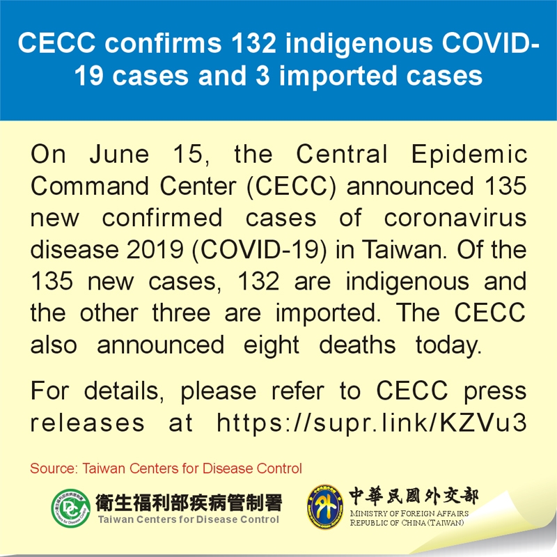 Regarding the three new imported cases, Case #13305 is an over 20-year-old male from Indonesia. Case #13332 and Case #13333 are a Taiwanese female in her 50s and a Taiwanese man under 10, respectively. They both returned to Taiwan from Peru on June 6.