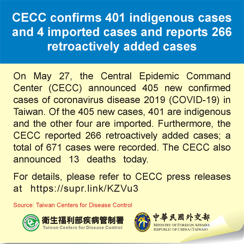Regarding the two imported cases, Case #5646 is an over 20-year-old male from China. Case #5891 is a Taiwanese man in his 50s. He developed symptoms and tested positive for COVID-19 in India on May 5.