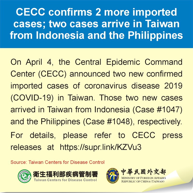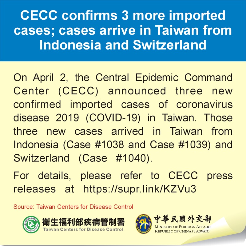 On April 7, the Central Epidemic Command Center (CECC) announced that it would begin to offer COVID-19 vaccine to disease prevention and control personnel at the central and local governments and front-line workers at high risk of exposure, who are Groups 2 and 3 people listed in the COVID-19 vaccination program, on April 12.